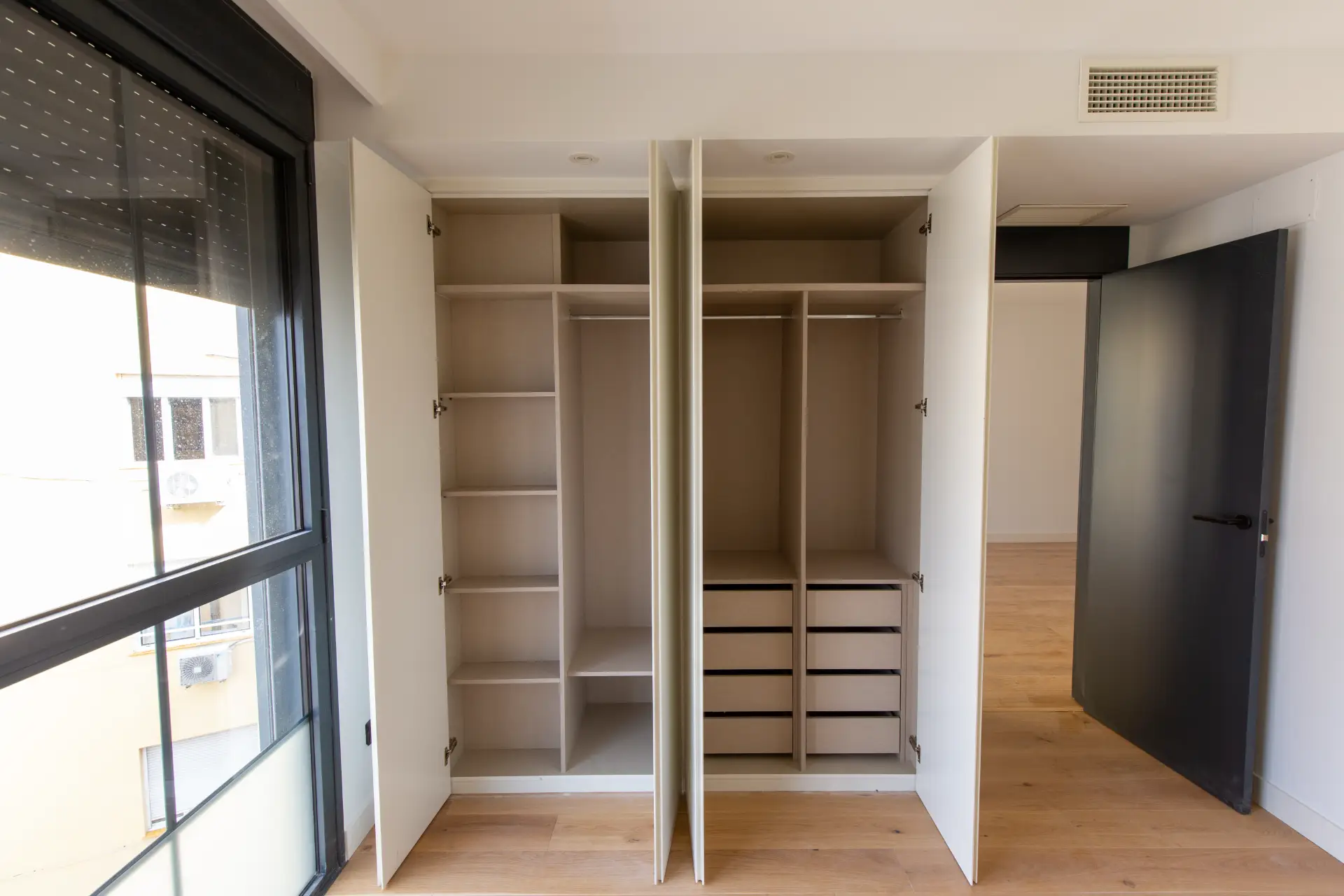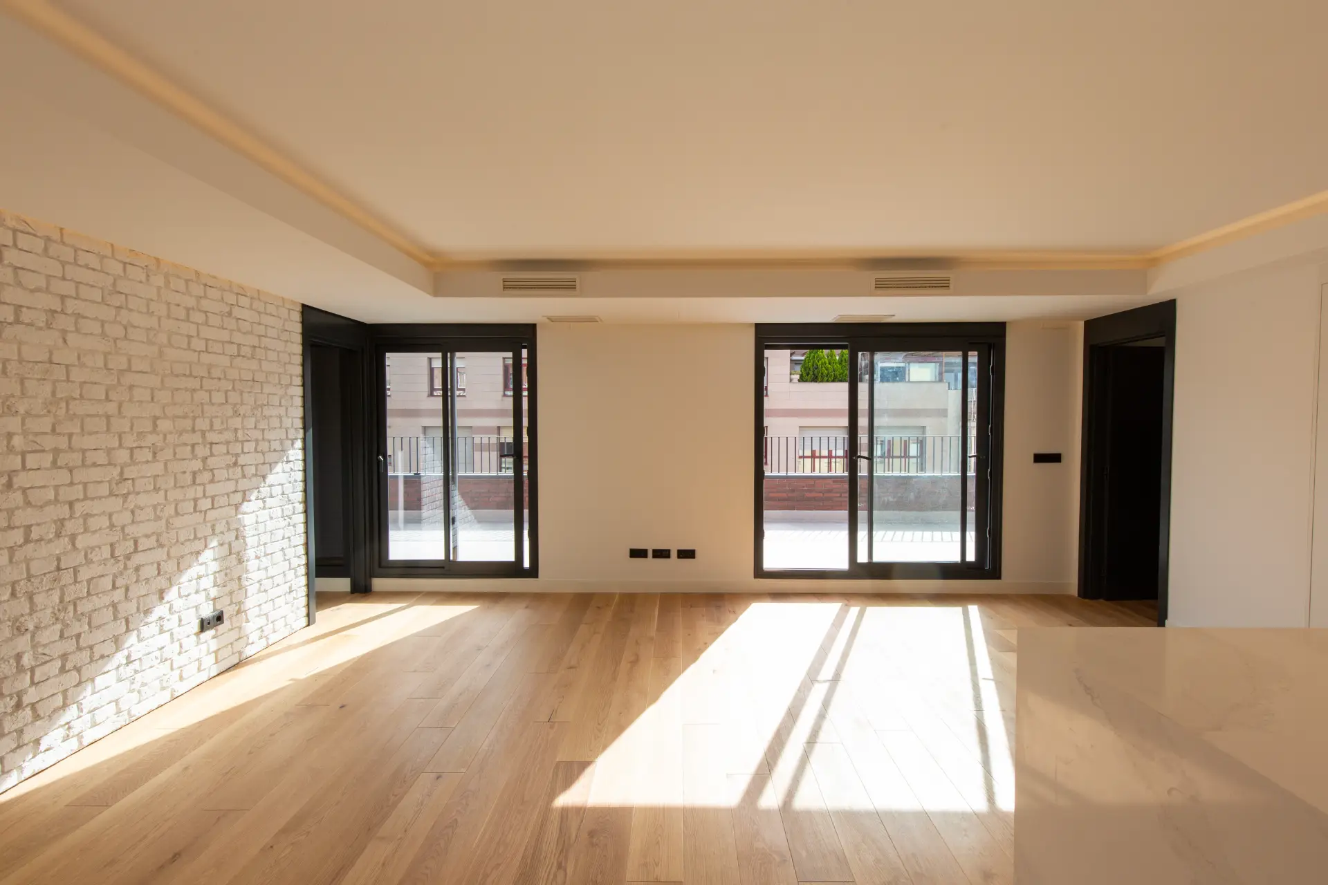 Las viviendas de 1, 2 y 3 dormitorios tienen cuidados initeriores de estilo industrial, en los que la calidez del ladrillo convive con la naturalidad de la madera de roble, con estancias de techos altos y miradores amplios y luminosos.